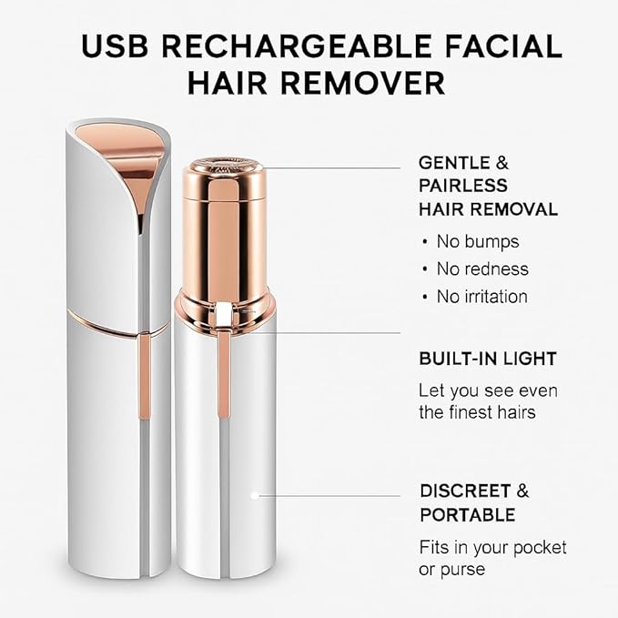 - Gentle & Painless Hair Removal: Designed with precision blades and hypoallergenic technology to remove fine facial hair instantly without irritation, cuts, or redness. Perfect for sensitive skin.