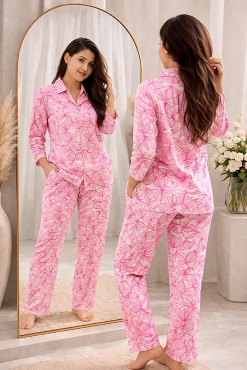 - Attractive Floral Print Design: Elegant floral pattern gives a stylish and trendy look, perfect for modern nightwear and home wear use.