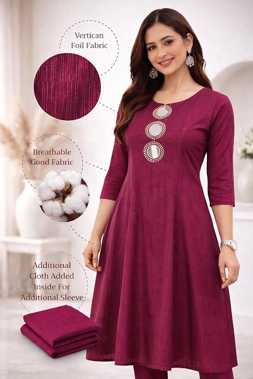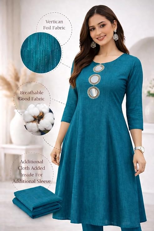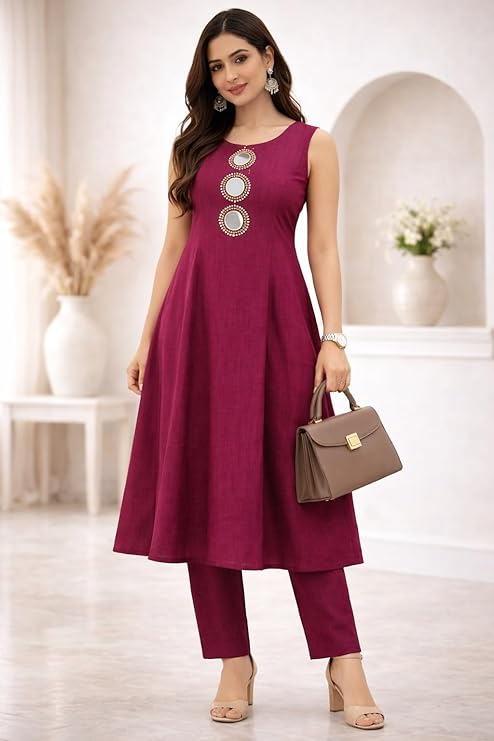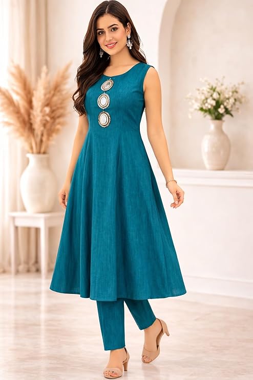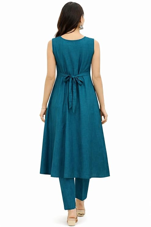 • Flattering A-Line Fit Sleeveless A-line kurta design enhances body shape while providing a comfortable and graceful silhouette.