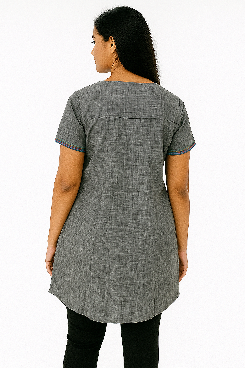 Women's Embroidered Gray Tunic - Floral Handcrafted Top