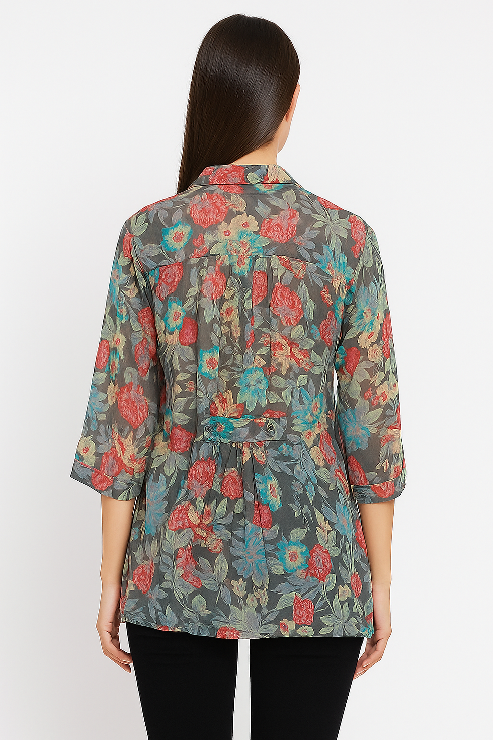 Bohemian Floral Print Blouse - Women's Flowy Button-Down Shirt