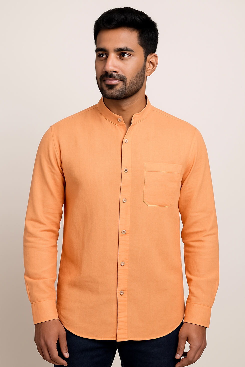 Two-Tone Red and Beige Short-Sleeve Casual Shirt